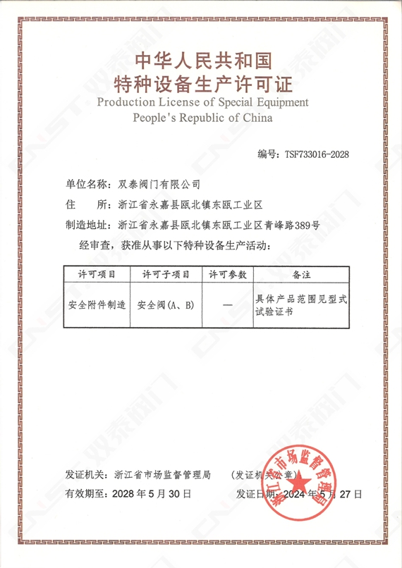 安全閥特種設備生產許可證
