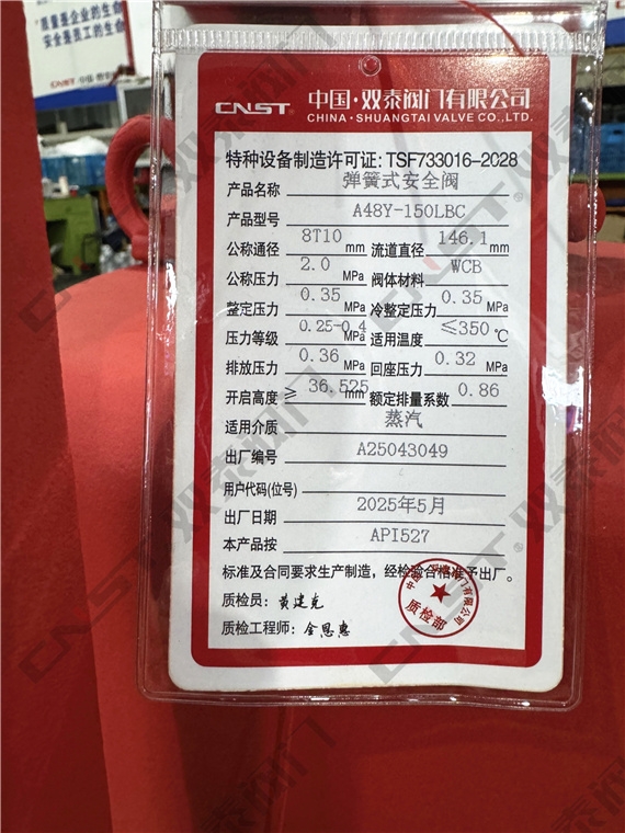 在石油化工、電力、制藥等行業(yè)的高壓蒸汽系統(tǒng)中,安全閥是保障設(shè)備安全運(yùn)行的最后一道防線。雙泰安全閥工廠A48Y-150LBC 8T10 帶扳手彈簧全啟式安全閥嚴(yán)格遵循 API Std 526、API RP 520 及 ASME VIII 國際標(biāo)準(zhǔn),專為蒸汽介質(zhì)設(shè)計(jì),確保在超壓工況下快速響應(yīng),精準(zhǔn)泄放,保護(hù)關(guān)鍵設(shè)備安全。